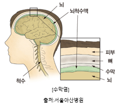 뇌수막염은 뇌와 척수의 주변을 둘러싸고 있는 막인 수막(두피, 아치대뇌막, 골수막)이 염증을 일으키는 상태를 가리킵니다. 이 염증은 일반적으로 바이러스, 세균 또는 기타 감염성 병원체에 의해 유발됩니다.